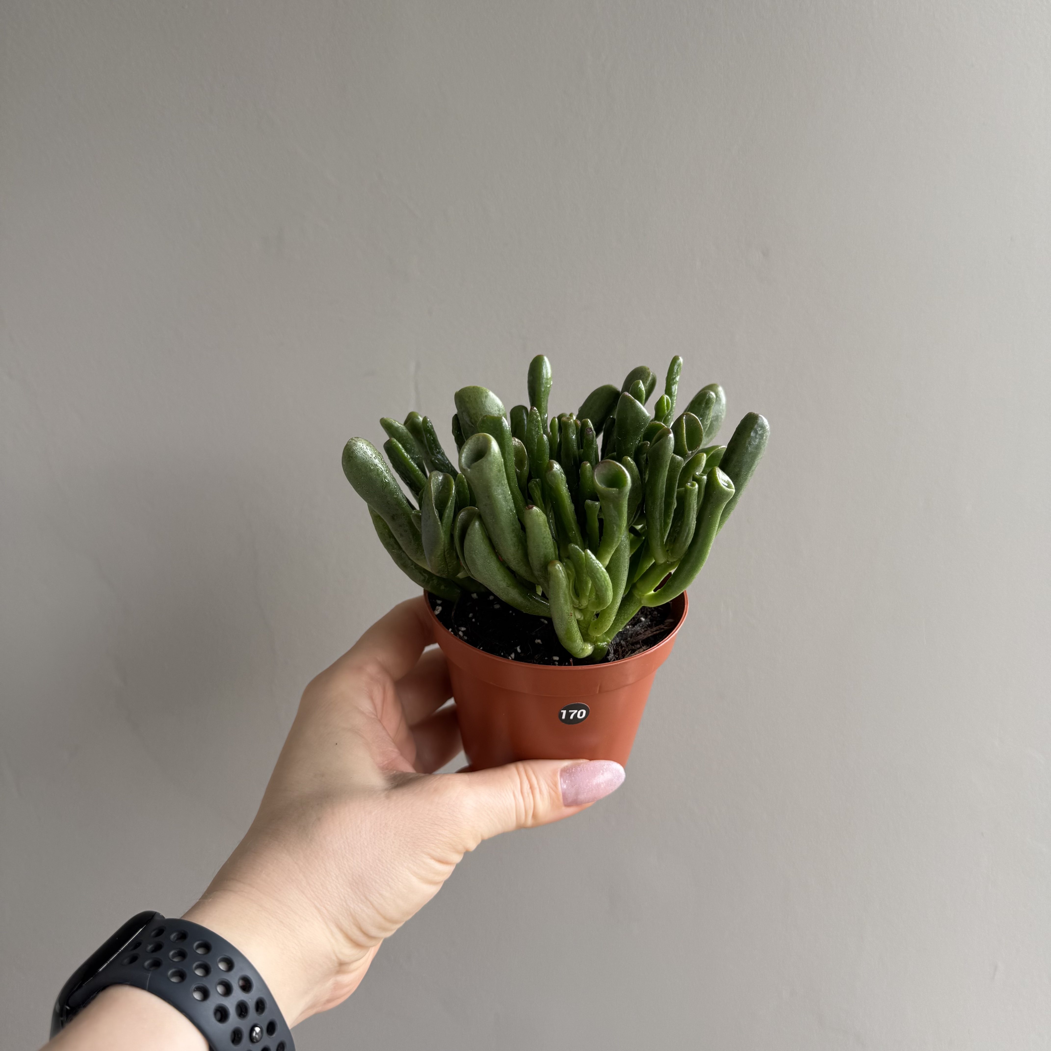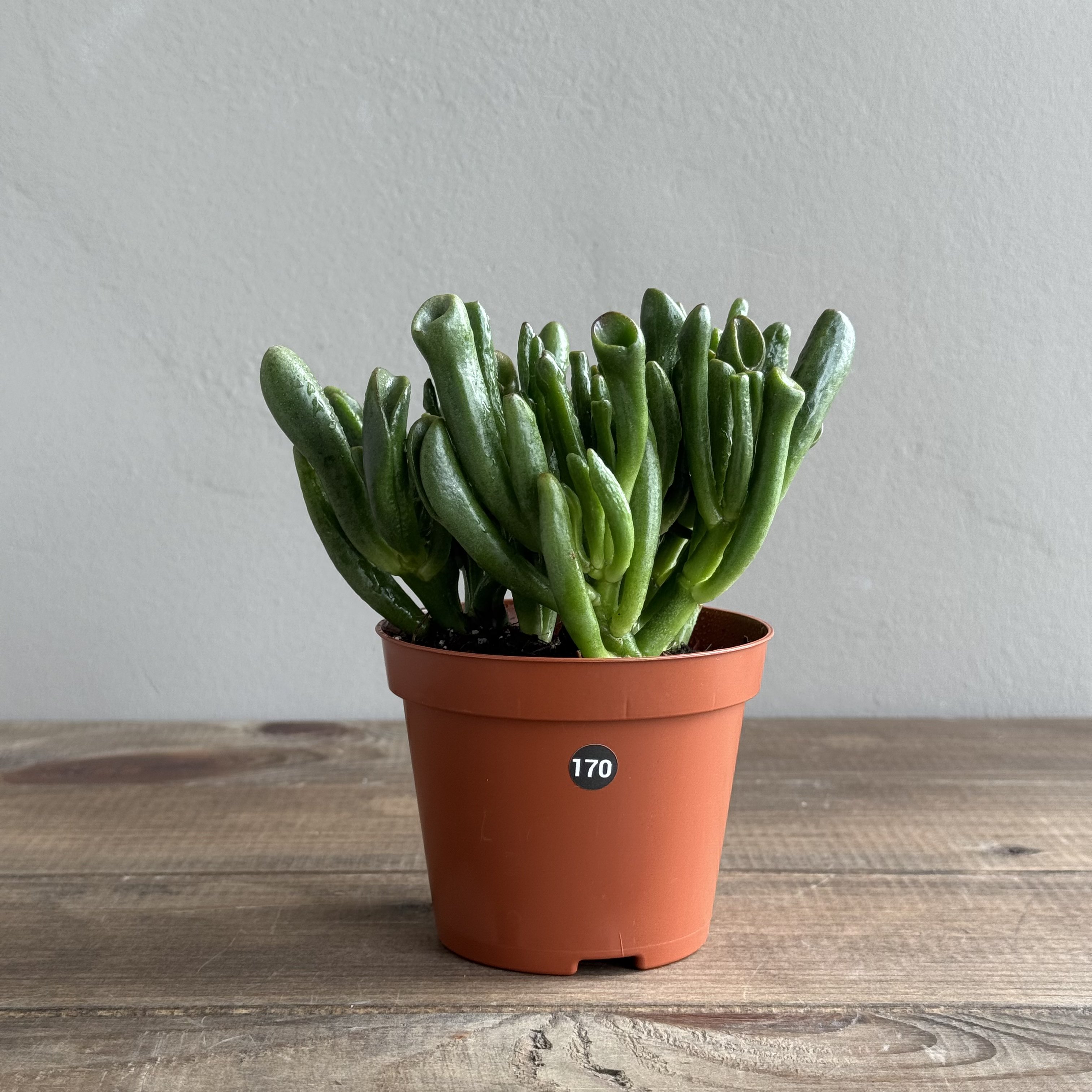 Крассула Хоббит может вырасти до 70 сантиметров в высоту. При правильном формировании ствол деревенеет и утолщается, растение хорошо ветвится. Отличительная особенность сорта – форма листьев. Листовая пластина свернута в трубочку и напоминает ухо хоббита. Листья зеленые, при достаточном количестве света имеет красную кайму.