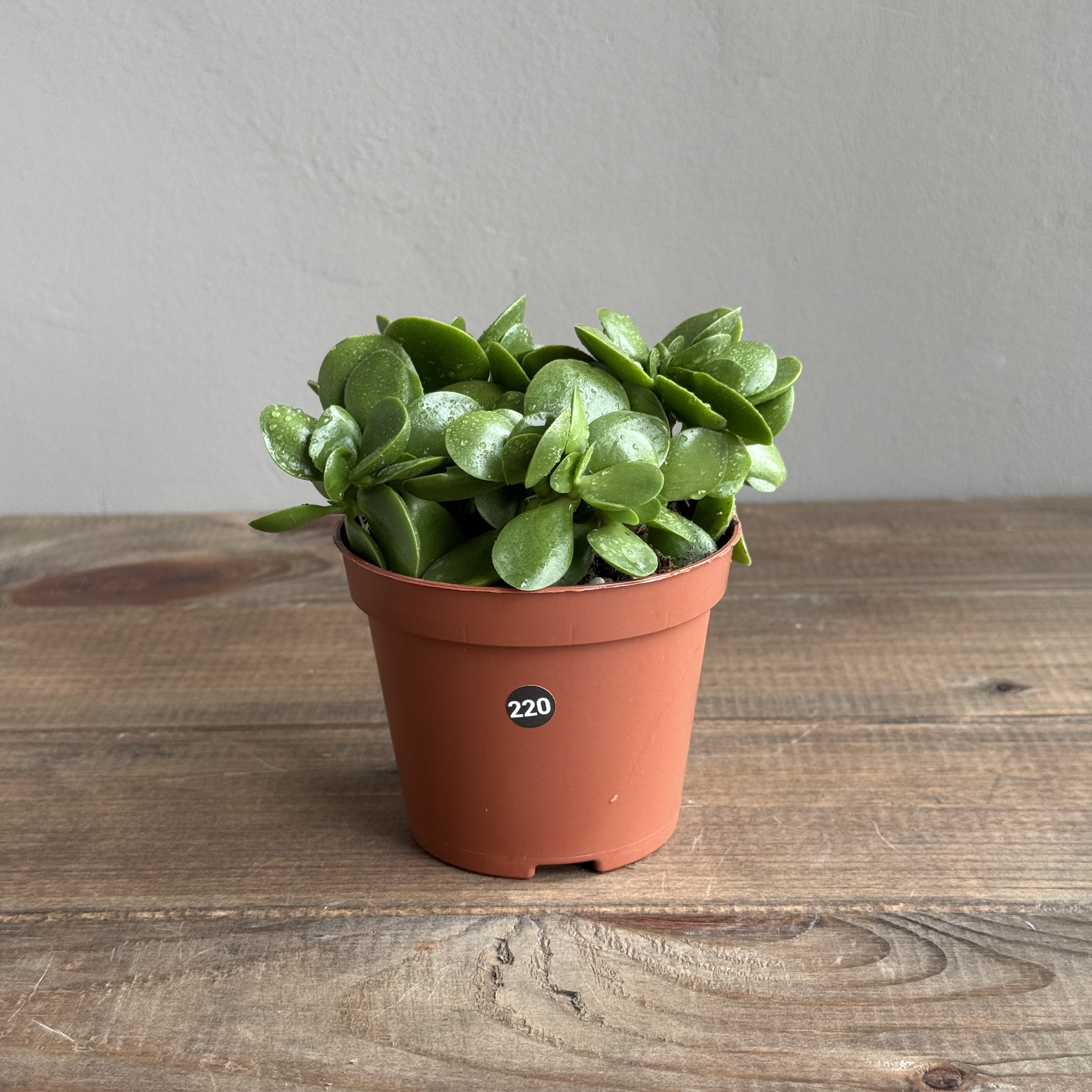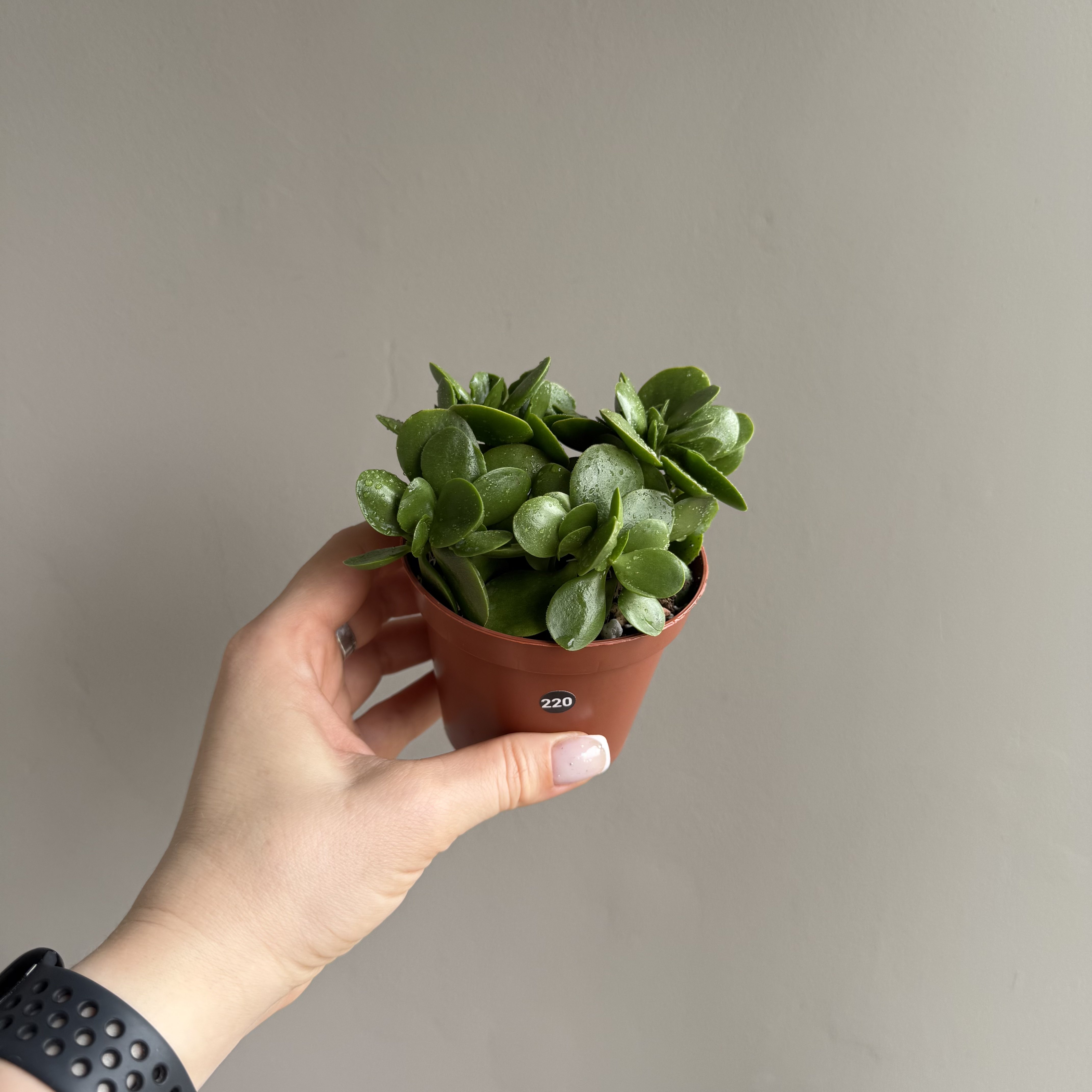 Миниатюрный суккулент, редко вырастает до 25 сантиметров в высоту, стебель может стелиться. Листья округлые до 5 сантиметров в диаметре, с вогнутым центром, напоминают зеленые лепестки и образуют розетку. Листовая пластина покрыта густыми волосками, бархатная на ощупь.
