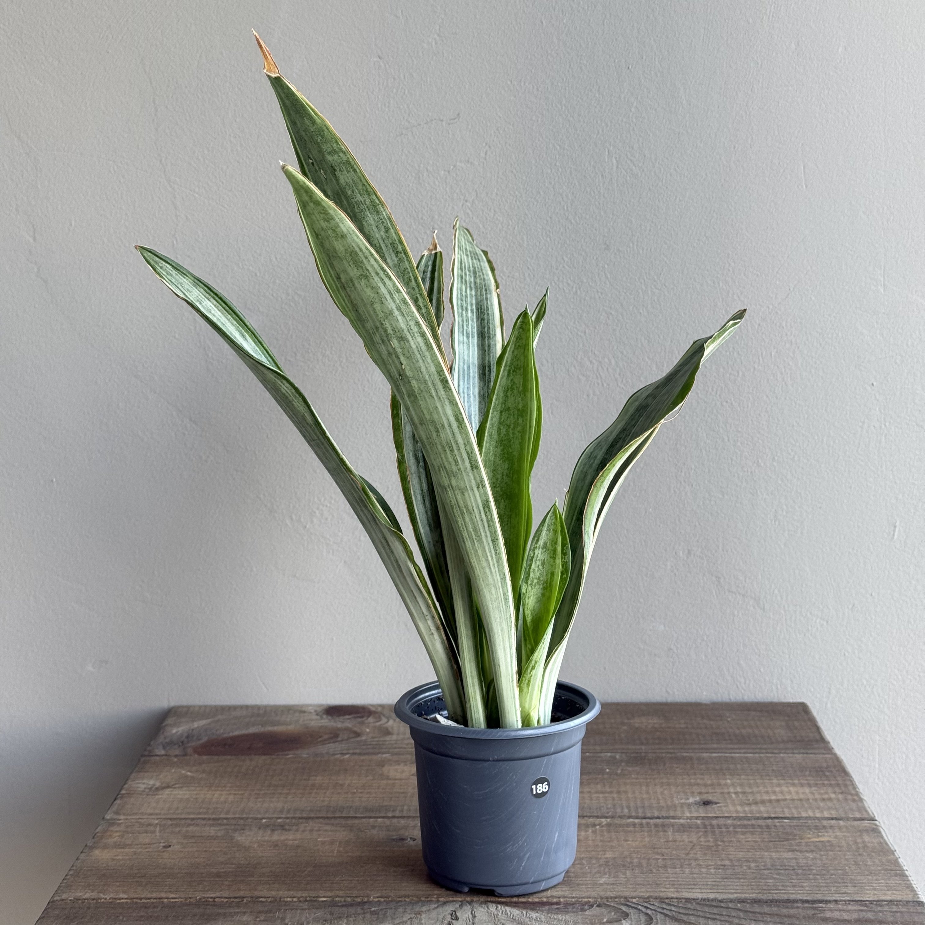 Низкорослый сорт, не превышает 50 сантиметров в высоту. Выведен на основе Сансевиерии Металлика. Листья мечевидные, с продольными полосами зеленого и серебристого цвета.